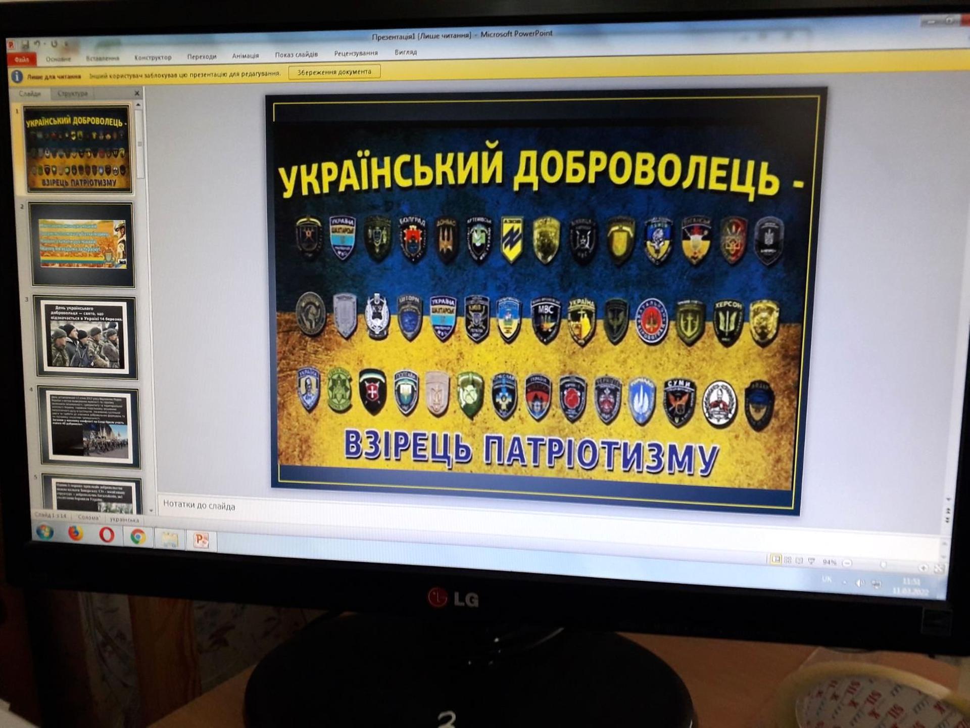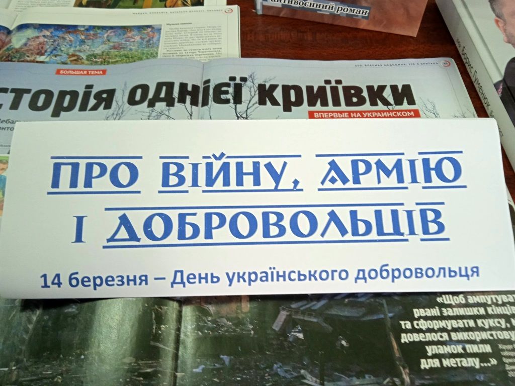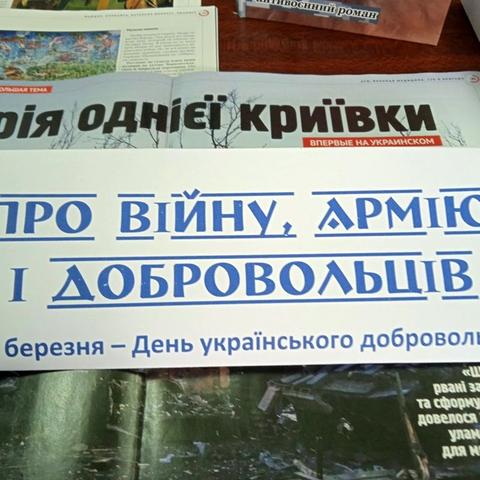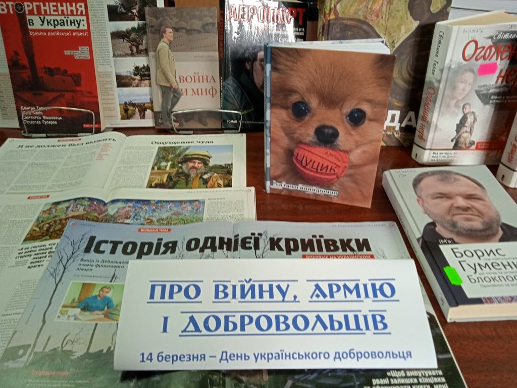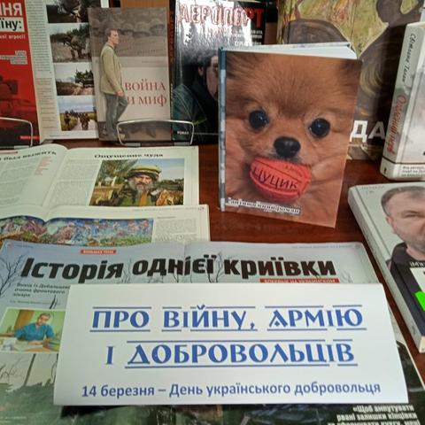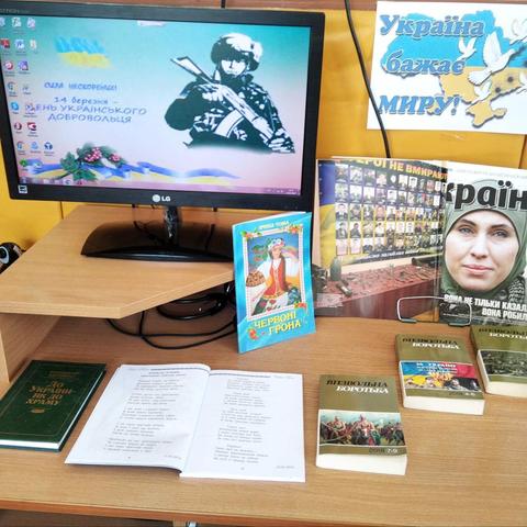 І сьогодні наша сформована армія добровольців, волонтерські рухи перетворились у кістяк Самооборони, які чинять супротив агресорам зі сторони росії. Про все це розповідають користувачам бібліотекарі біля коментованих патріотичних виставок: «Добровольці – воїни світла», «Доброволець - це поклик серця», «Про війну, армію і добровольців», «Сила нескорених». А в Публічній бібліотеці впродовж дня демонструється слайд-презентація «Український доброволець – взірець патріотизму».