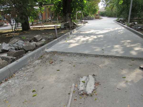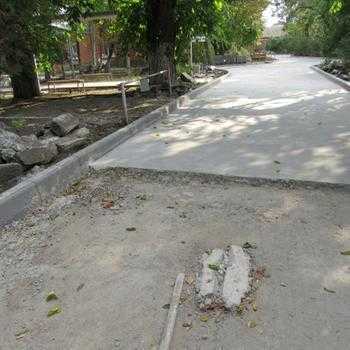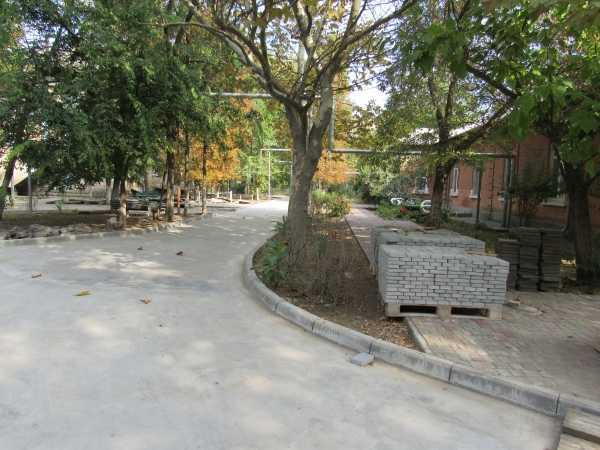 В міській багатопрофільній лікарні частково завершені роботи по покриттю проїзних шляхів, і ведеться укладка тротуарної плитки на пішохідних доріжках.