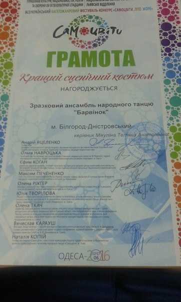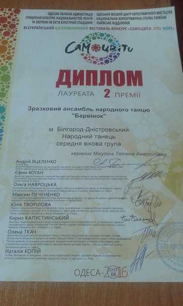 Серед конкурсантів, які виступили у трьох вікових категоріях від 6 до 18 років, учасники колективу вибороли аж дві нагороди: диплом лауреата 2 премії та грамоту «За кращий сценічний костюм».