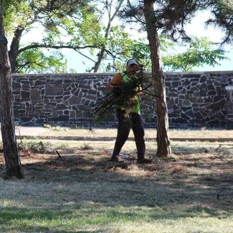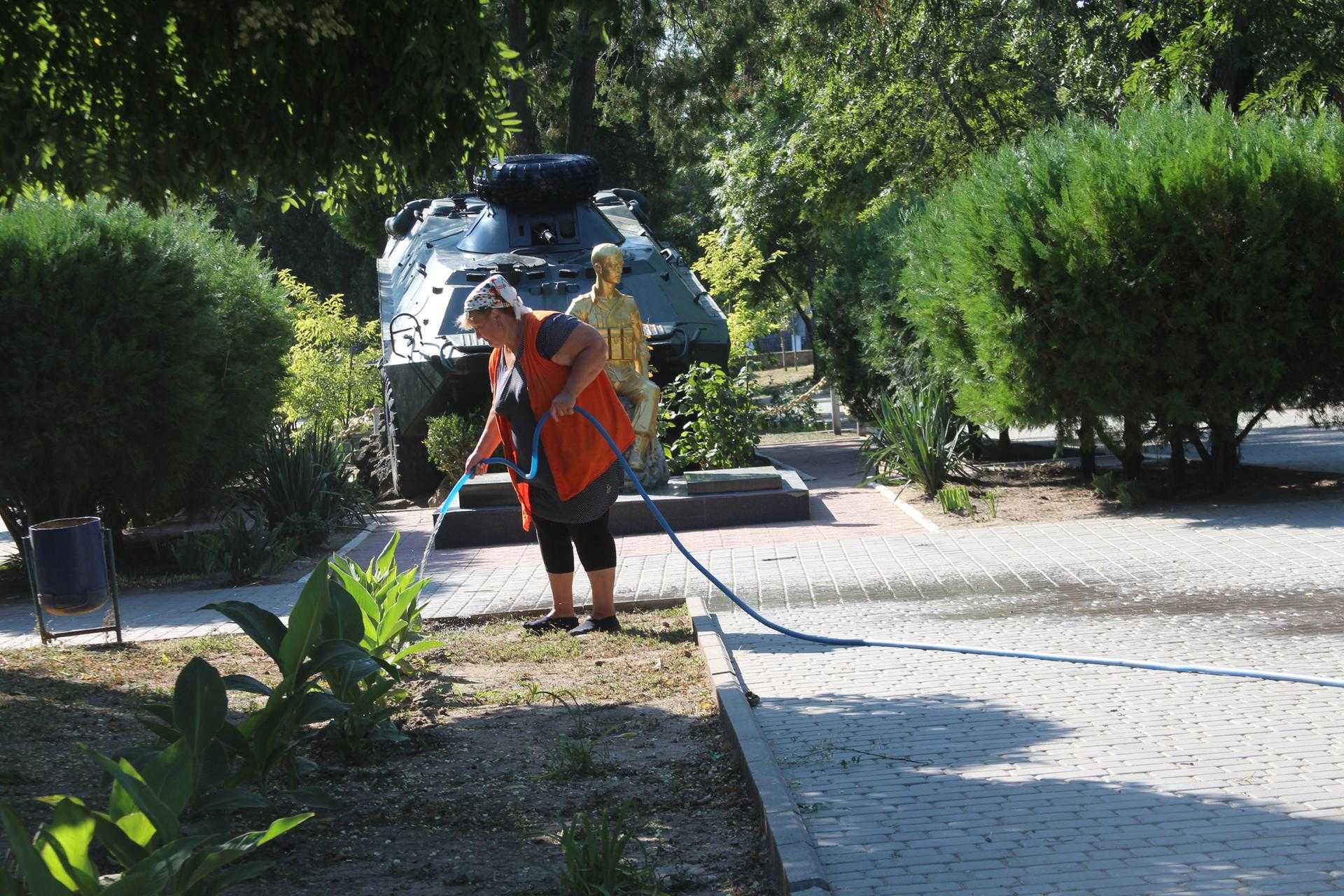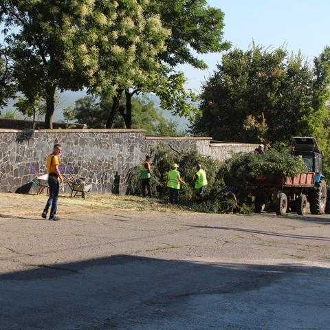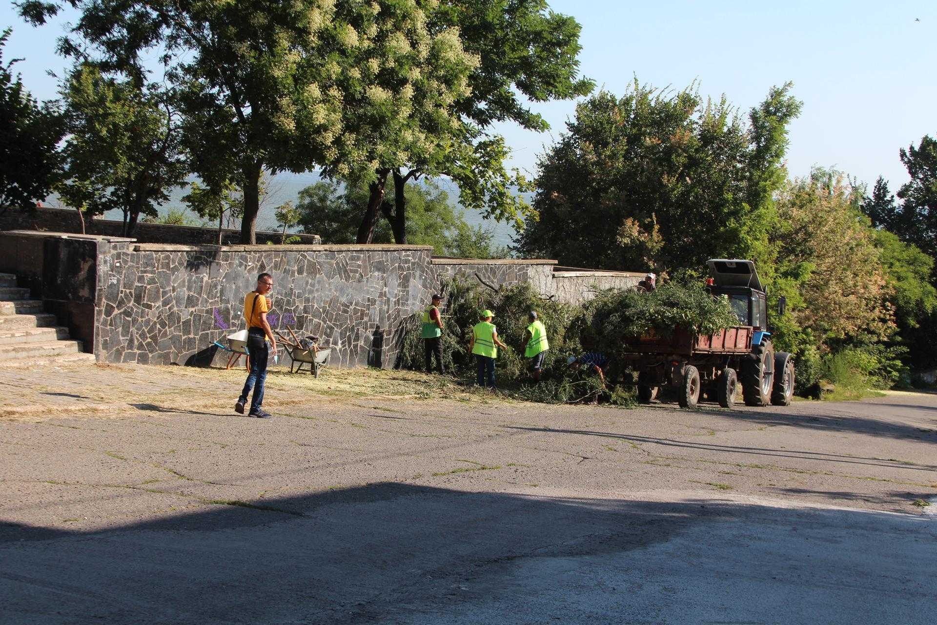Зокрема з ранку працівники та спецтехніка міського центру «Благоустрій» і комунального підприємства «Автотранссервіс» розпочали роботи щодо покосу трави, прибирання сміття, підрізання гілок дерев, очищення паркових доріжок, та Меморіальних комплексів, що розташовані на території даного скверу.