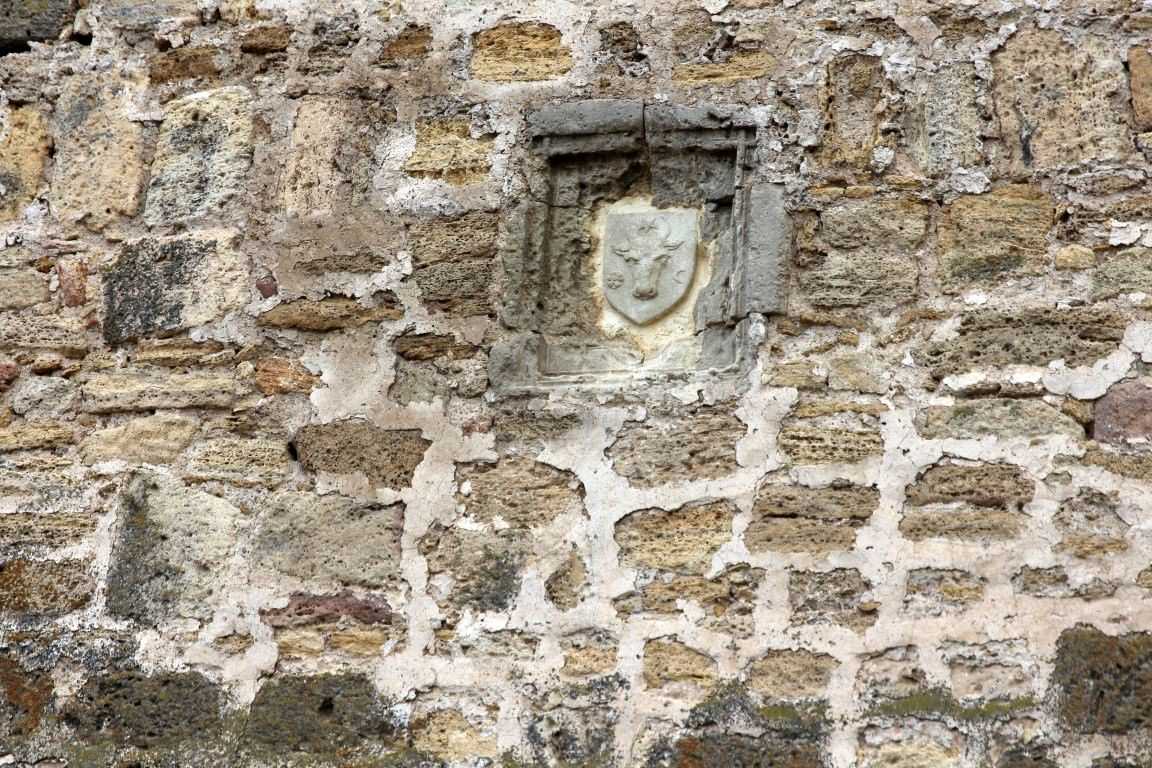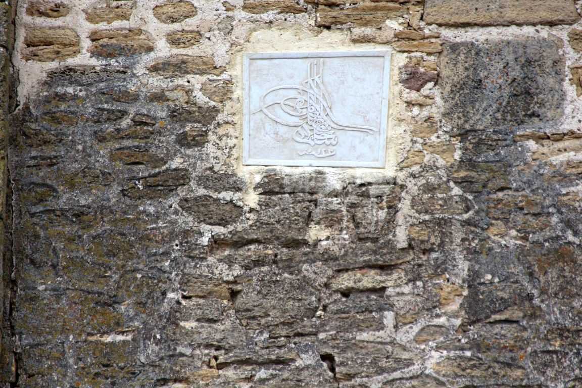 Перша плита розташовувалася на фасаді ворітної вежі, над входом до фортеці. На ній зображена тугра (особистий герб) султана Османської імперії, Селіма III, а також дата: 1796 г. Ця плита датує собою закінчення самої масштабної модернізації фортеці за проектом знаменитого французького інженера Франсуа Кауффера.