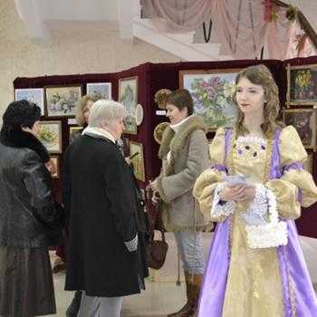 До початку святкового концерту була можливість відвідати виставку декоративно-прикладного мистецтва «Букет для улюблених», оформлену в фойє ЦКіД, де запрошених зустрічали привітаннями та листівками.