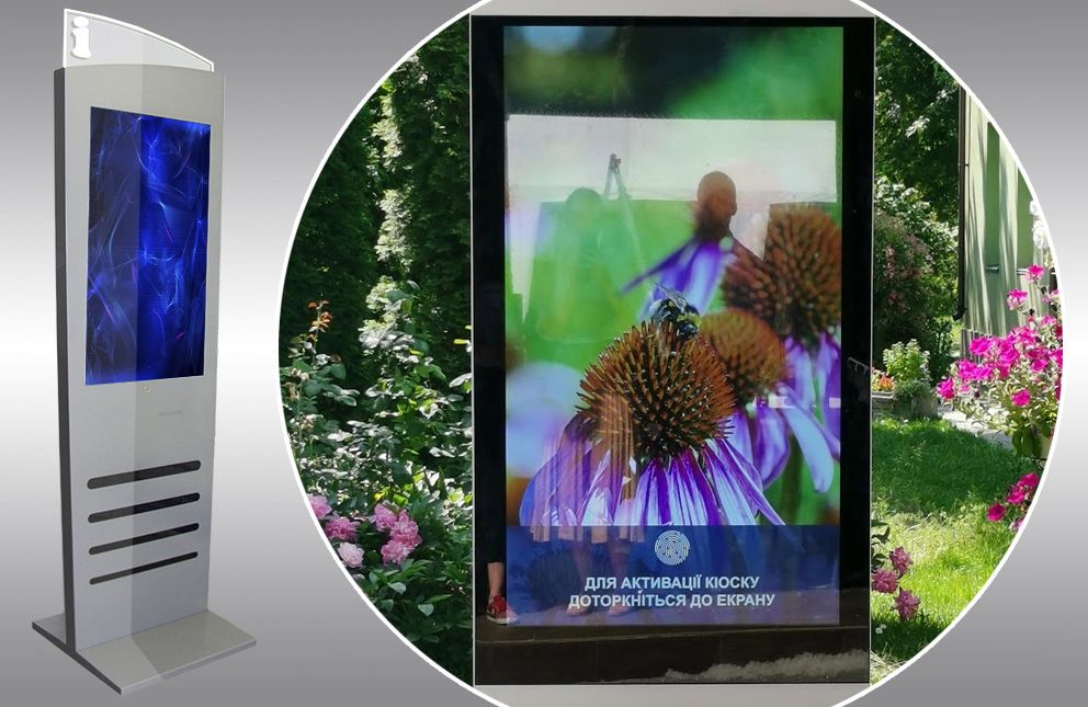 Інфокіоск - це сучасний маркетинговий інструмент, що дозволяє використовувати інтерактивне спілкування з відвідувачем як ефективну мотивацію для здійснення дії. Це єдина у своєму роді система відображення інформації, заснована на використанні технології безшовної передньої панелі сенсорних дисплеїв у міцному корпусі, розробленому для використання в інтерактивному режимі 24/7.
