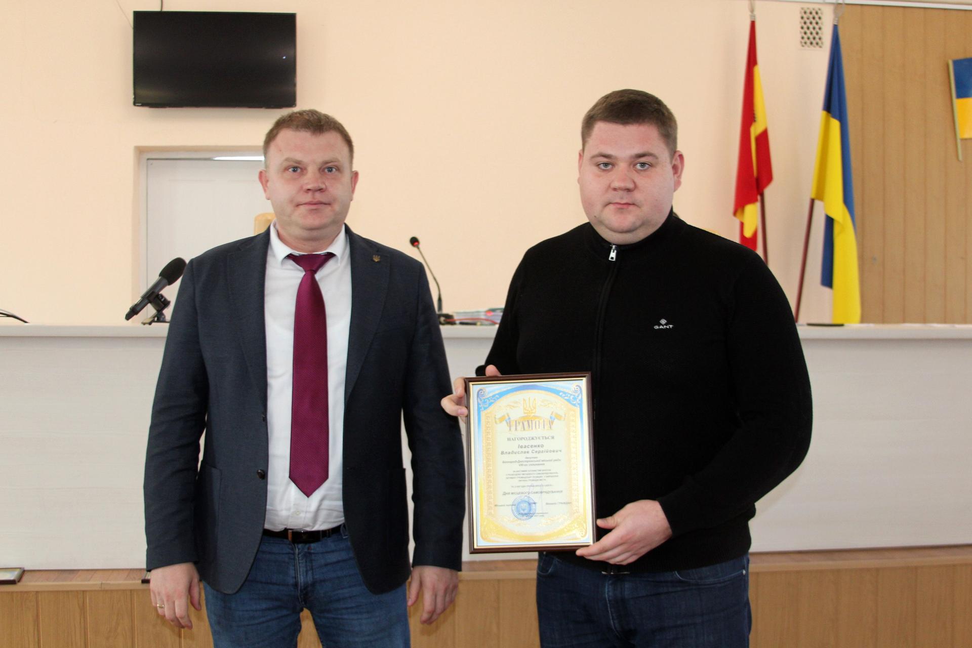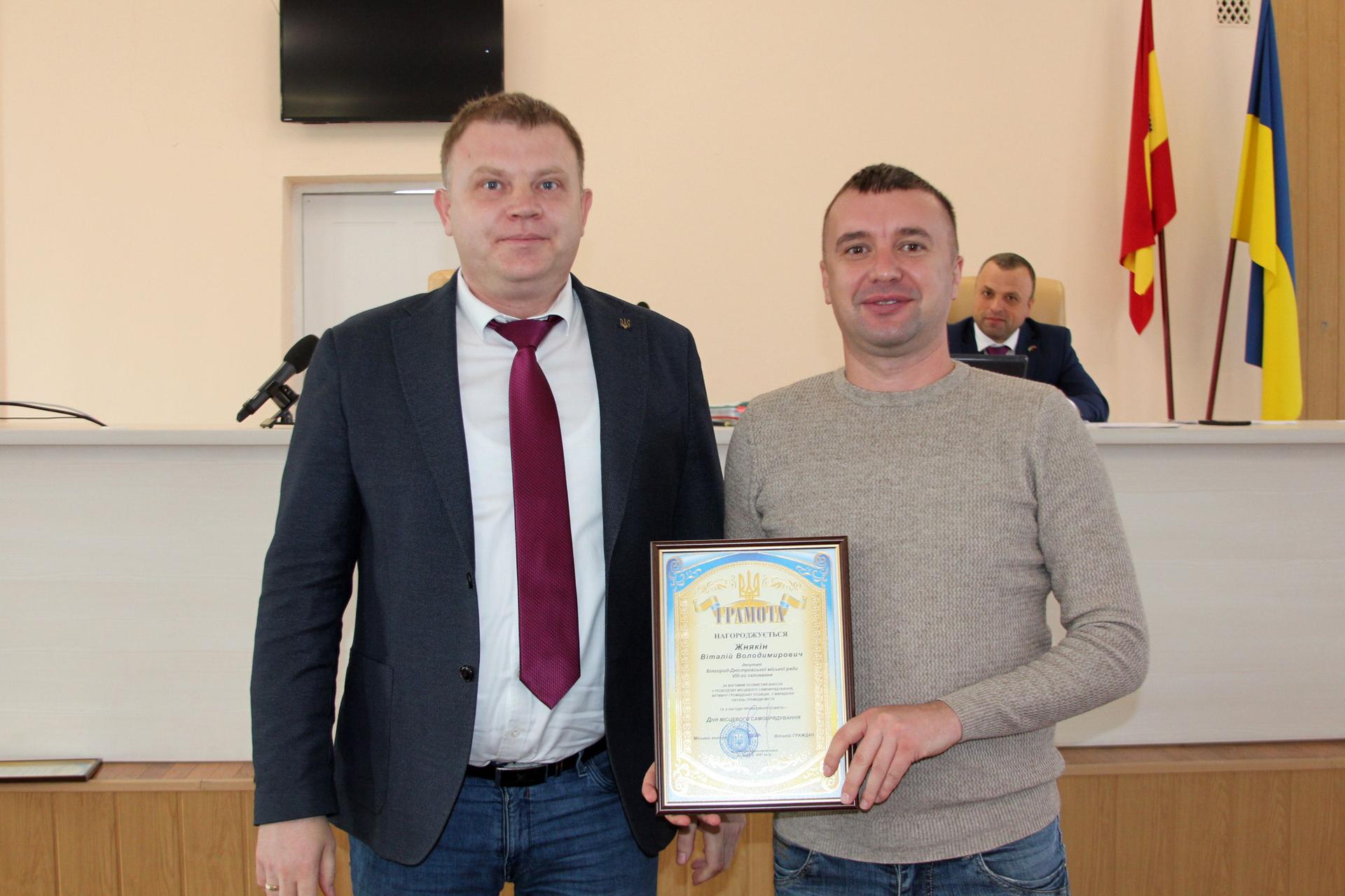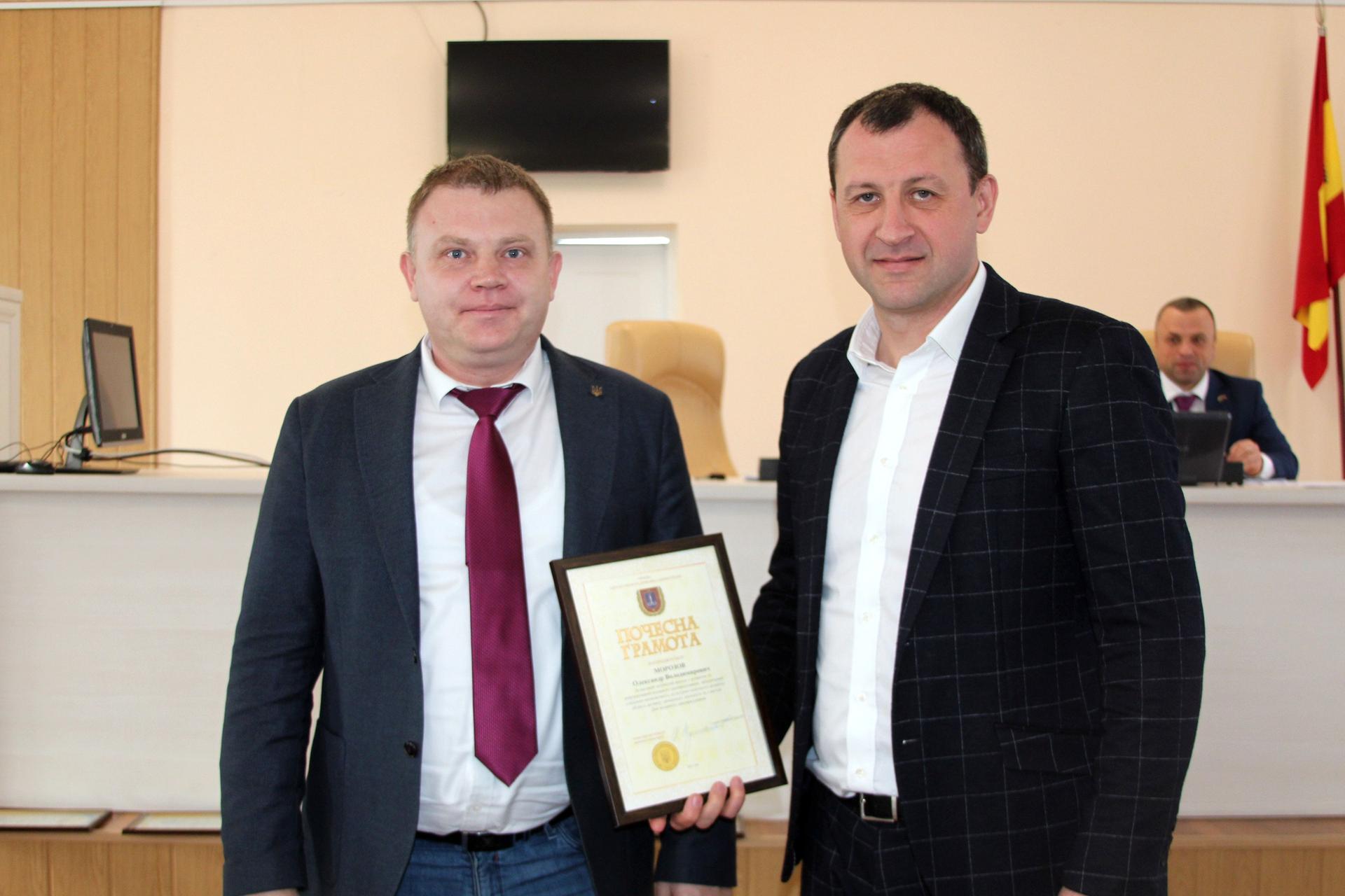 Перед початком сесії, з нагоди Дня місцевого самоврядування, міський голова вручив грамоту Одеської обласної державної адміністрації депутату міської ради Олександру Морозову, а також нагородив Почесною грамотою депутатів: Віталія Жнякіна, Владислава Івасенка, Володимира Сороку та Ігоря Язаджі.