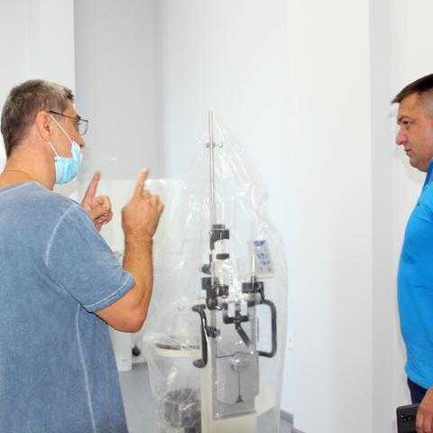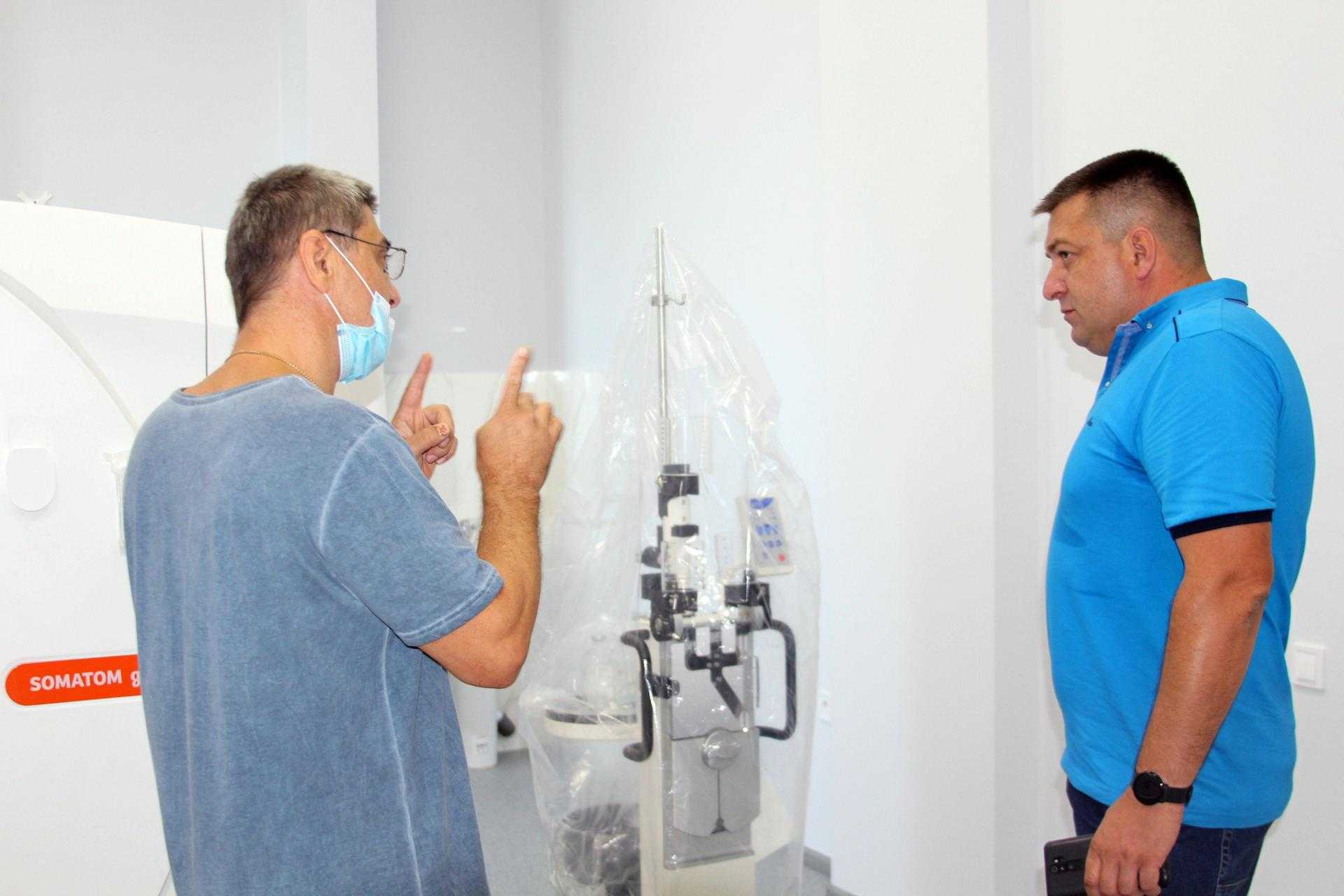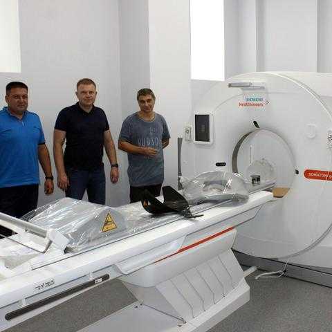 Фахівці компанії-постачальника, в присутності міського голови Віталія Граждана та його заступника Андрія Криштопова, провели калібрування, перевірку якості зображення, підключення принтерів і робочих станцій сучасного комп'ютерного томографа.