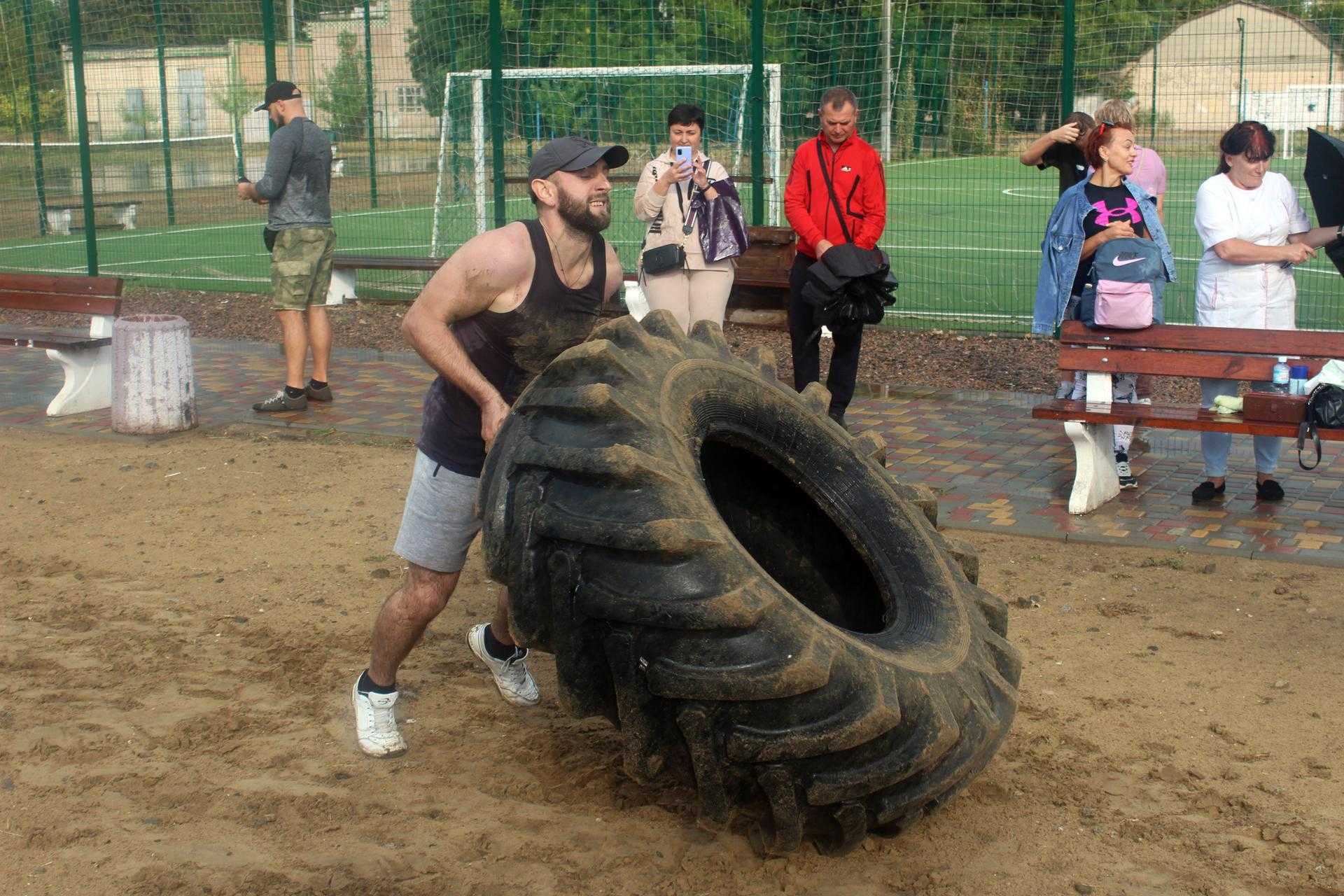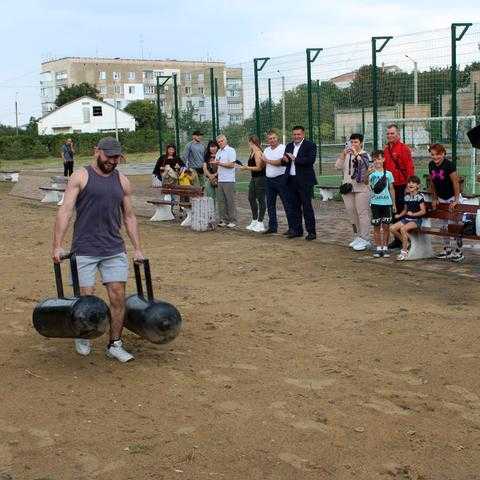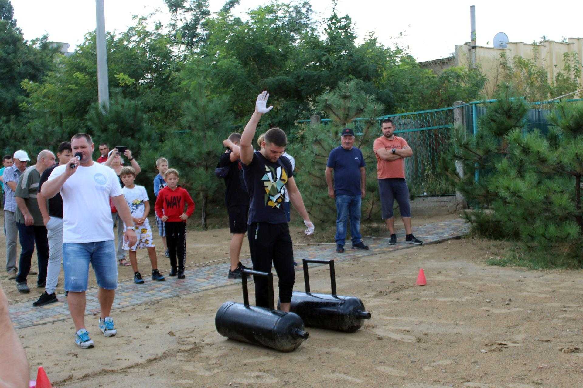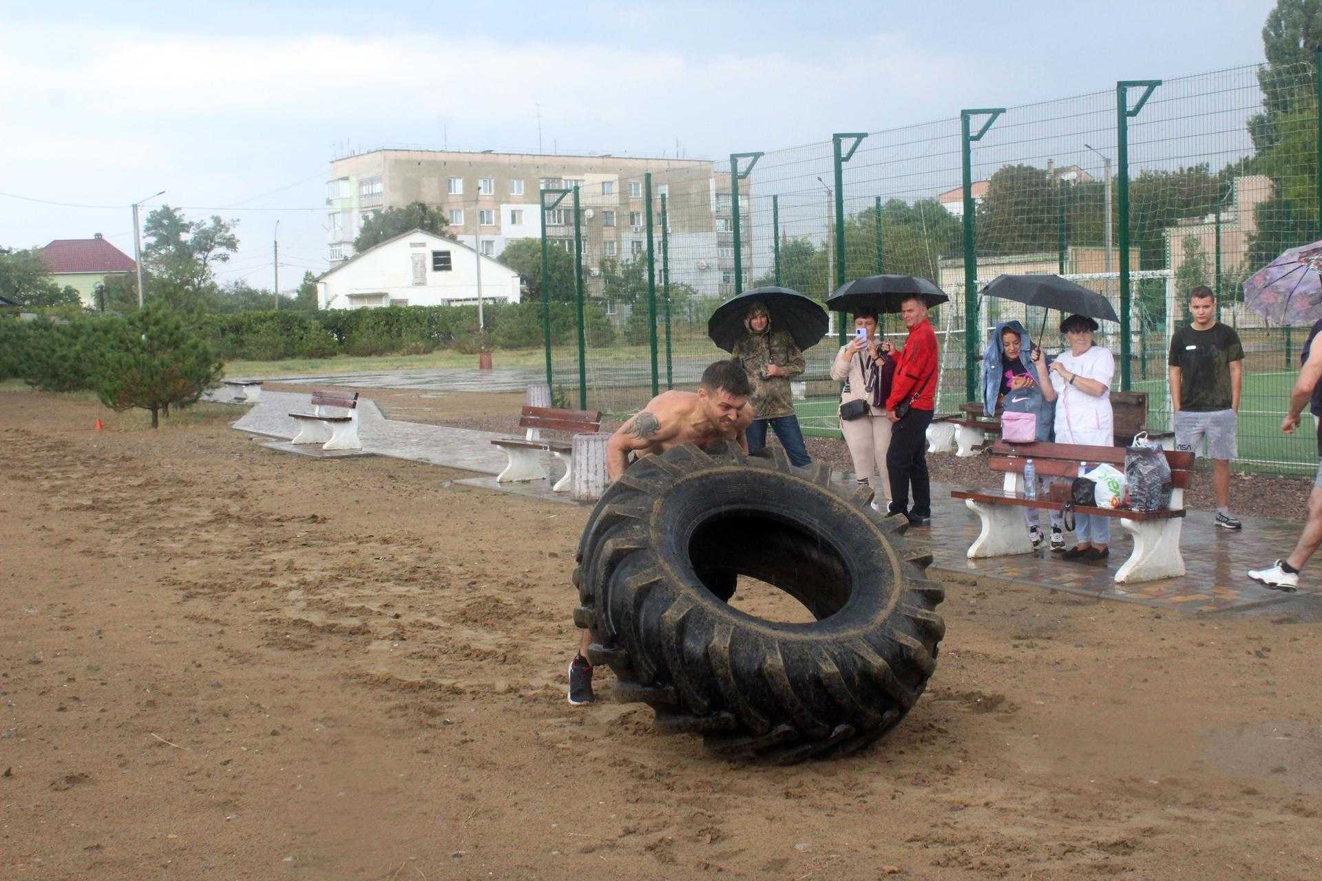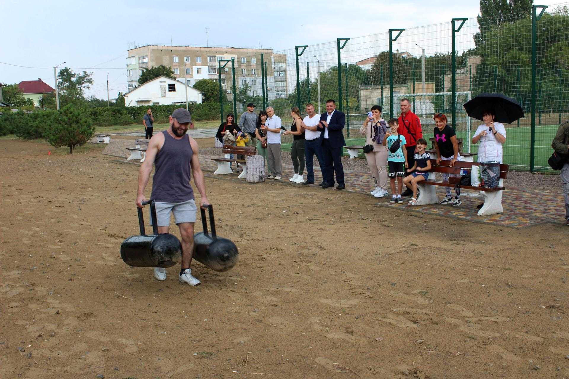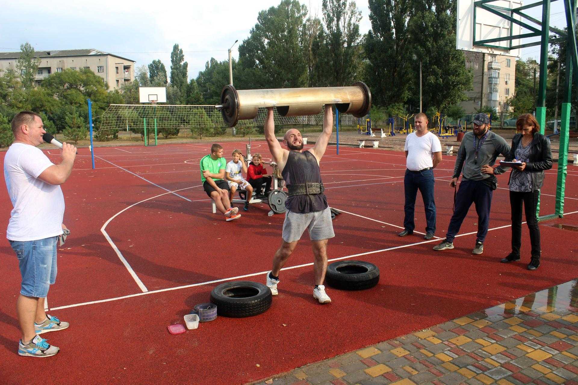 На спортивному майданчику по вул. Сонячній, 4, спортсмени демонстрували свою силу у різних вправах: переносили балони, перекочували величезні покришки, піднімали залізну колоду, тягнули в упряжці автомобіль та піднімали штангу.