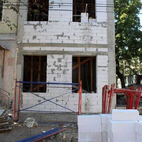 З початку серпня поточного року розпочався етап формування фундаменту, взведення опори покрівлі та відновлення стін в будівлі колишнього міського Центру надання адміністративних послуг, що розташована по вулиці Єврейській,21,