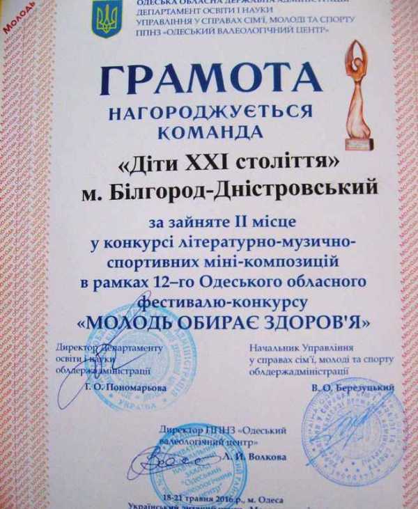 Протягом дванадцяти років в місті Одеса збираються переможці районних та міських фестивалів, щоб позмагатися за першість на обласному фестивалі. В цьому році місто Білгород-Дністровський представляла команда «Діти ХХІ століття» (керівники Меліхова М.О. та Коваленко І.О.) ЗОШ №4, яка перемогла на міському етапі. Виступ нашої команди на обласному фестивалі був яскравим, щирим, позитивним та гумористичним, що викликало посмішки, бурхливі оплески та підтримку присутніх глядачів. Тож, за підсумками команда «Діти ХХІ століття» посіла почесне ІІ місце.