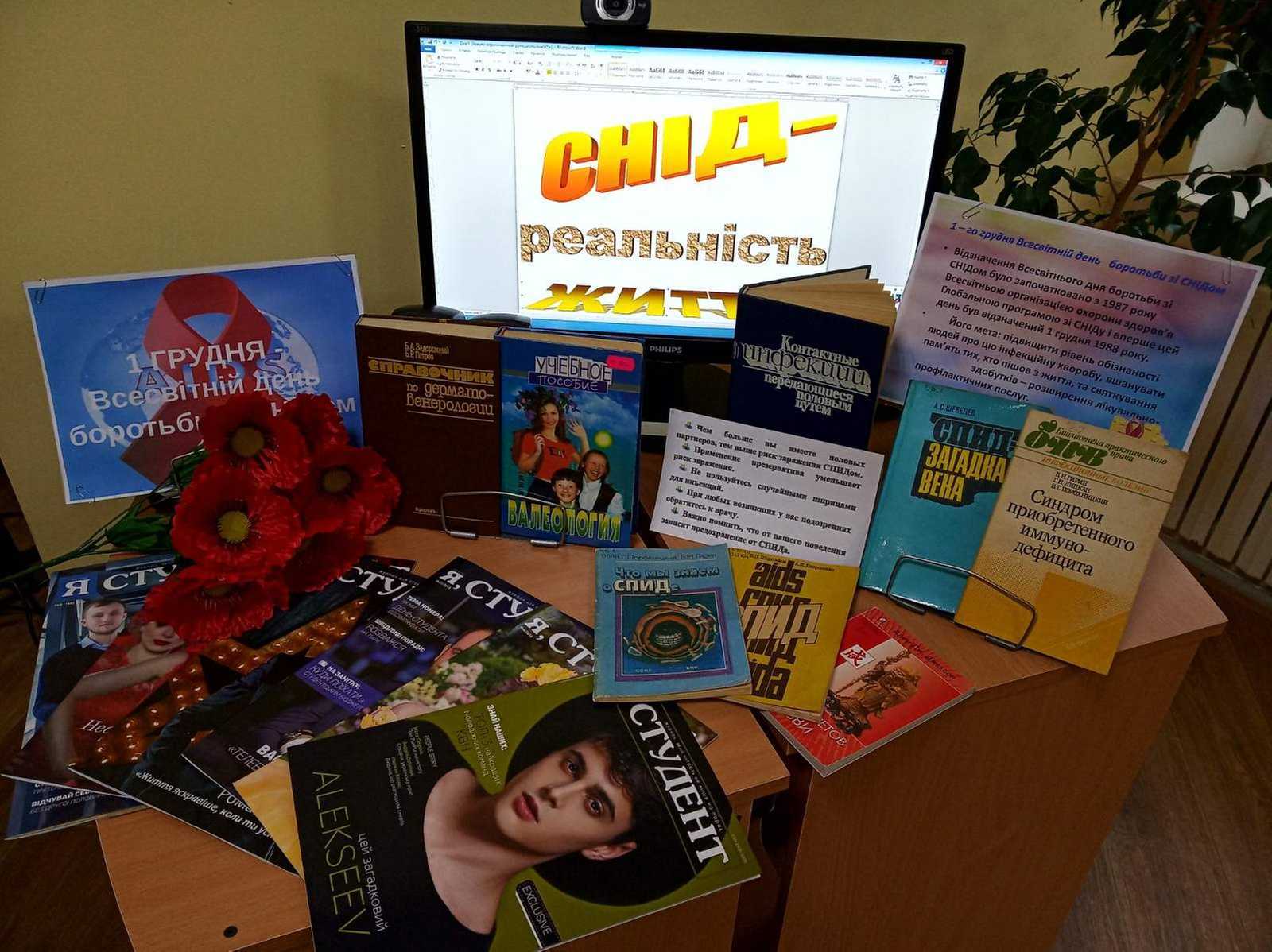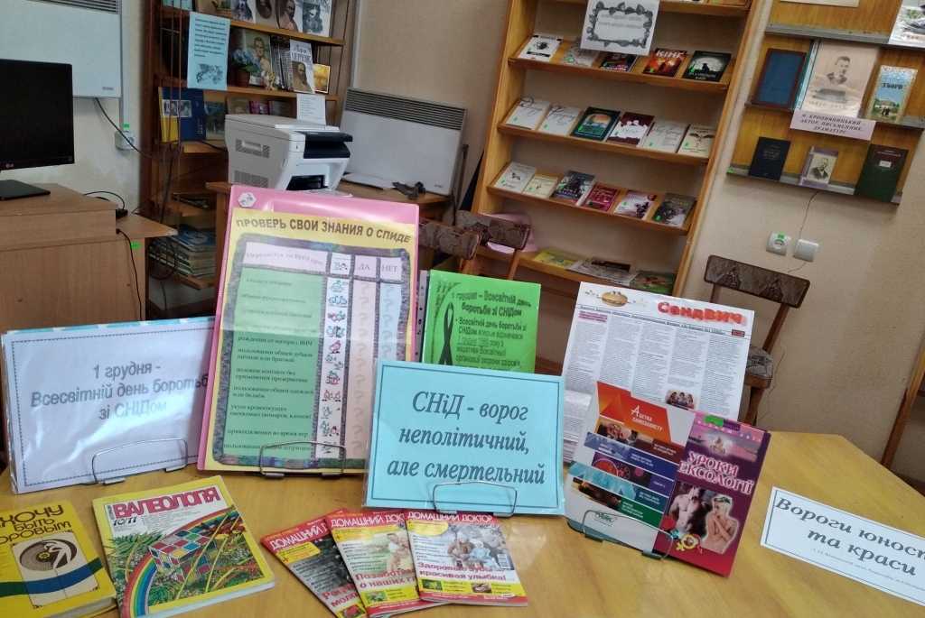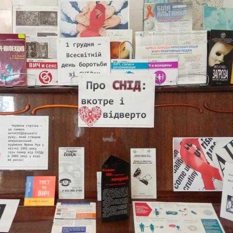 В бібліотеці для дітей та юнацтва ім. В. Катаєва проходив інформаційний дайджест «Шлях у здорове майбутнє», під час якого читачам розповіли про ВІЛ, наслідки хвороби та репродуктивне здоров’я. В культурно-освітньому медіа-центрі бібліотеки ім. О. Пушкіна створена книжкова виставка «СНІД – реальність життя», в ЦМБ ім. М. Горького оформлена сигнальна книжкова вітрина «Про СНІД: вкотре і відверто», в бібліотеці ім. М. Кропивницького – книжкова виставка «СНІД – ворог не політичний, але смертельний».