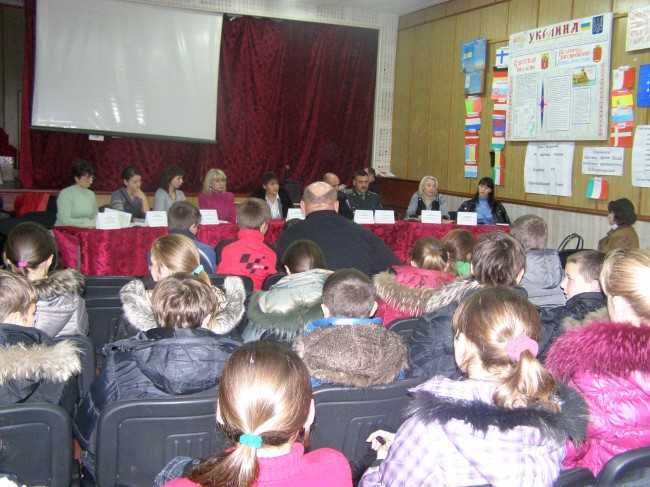 | В рамках Всеукраинской недели права, которая проходит в период с 6 по 12 декабря 2010 года, службой по делам детей Белгород-Днестровского городского совета организовано ряд мероприятий. 8 декабря 2010 года в актовом зале школы №5 состоялась встреча с несовершеннолетними ребятами общеобразовательных школ города на тему «Знай закон смолоду!». Открыла встречу заместитель городского головы Валентина Игнатьевна Бондаренко. Она акцентировала внимание собравшихся на том, что часто, совершая очередную «шалость», подростки не дают себе отчета в том, чем чревато такое поведение. Причиной противоправного поведения детей есть незнание законов. Статистику детской преступности по Украине и Одесской области озвучила начальник службы по делам детей Бабич Т.В. Законодательную базу по вопросам защиты прав детей озвучила главный специалист управления юстиции Большакова Елена Владимировна. Мунтьян Татьяна Алексеевна, и.о. начальника отдела образования, акцентировала внимание ребят на необходимости получения среднего образования и возможности реализации такого права в городе. Главный специалист центра занятости Чебан Оксана Георгиевна ознакомила с услугами, которые предоставляет центр занятости по профориентации. Перед ребятами так же выступили заместитель начальника Белгород-Днестровского межрайонного отдела уголовно-исполнительной инспекции Бойко Сергей Владимирович, и.о.начальника криминальной милиции по делам детей Мыца Олег Иванович. Из уст директора городского центра социальных служб для семьи, детей и молодежи Вязовых Татьяны Григорьевны и начальника отдела по делам семьи и молодежи Душаниной Ольги Николаевны ребята получили информацию о работе возглавляемых ими структурных подразделений городского совета. С заключительным напутственным словом к ребятам обратилась подполковник милиции в отставке Дембновецкая Татьяна Михайловна. | Обращение к ребятам заместителя городского головы В.И.Бондаренко | | Встреча с ребятами общеобразовательных школ города на тему «Знай закон смолоду!» | |