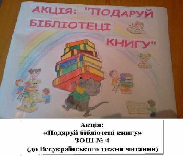 Під час проведення Всеукраїнського тижня дитячого читання всім учням було запропоновано взяти участь у доброчинній акції «Подаруй бібліотеці книгу».